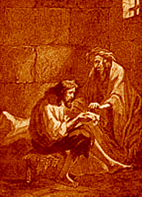 Abbe Faria and Edmond Dantes in their cell in the Chateau d'If as depicted by Alexander Dumas in his novel The Count of Monte Cristo |