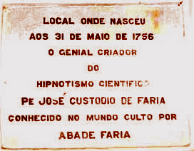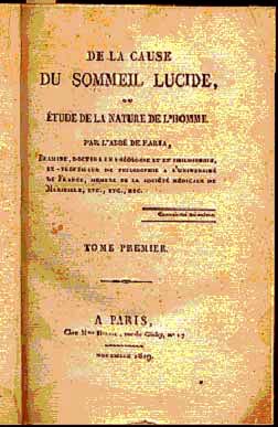 Disillusioned, Abbe Faria retired as a chaplain to a religious establishment and there wrote his book in French On The Cause of Lucid Sleep published in 1819, soon after which he died of a stroke at the age of 64. It is his sole surviving legacy. General Noizet later recalled: “After attending a dozen lectures [by Abbe Faria], I received my marching orders from the Minister of War and went to Boulogne, from where I set out eight months later for the Waterloo campaign. After the army was decommissioned…I got the idea to go and again see the poor priest whose sad adventures I had been told. He received me with much enthusiasm and convinced me to review his text with him, to correct some stylistic anomalies which, as a foreigner, he could not have avoided introducing into it. Thus I began this laborious task without contradicting any of his theoretical ideas and concentrating on sentence structure only, but I found this man to be so headstrong that I soon regretted my hurry in agreeing to help him. Finally, I regained my rank in the army, received new orders from the Minister, and did not again see the Abbe, who died in oblivion a few years later. “What I can add is that I was absolutely convinced of poor Faria's good faith, of the reality of the effects he obtained, of the correctness of a great part of his doctrine, though I believe that his physical presence, his use of facial expressions and his self-assurance played some part in the outcome.