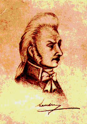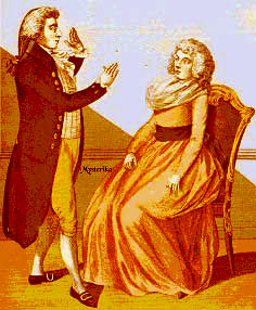 Anton Mesmer (above) was the father of the theory of animal magnetism, described in his Memoire, a precursor of hypnosis. Abbe Faria disagreed with his theory and practice and Mesmer is said to have challenged him to a hypnotic duel to determine who would hypnotise the other first. The Abbe, legend says, won the contest. |